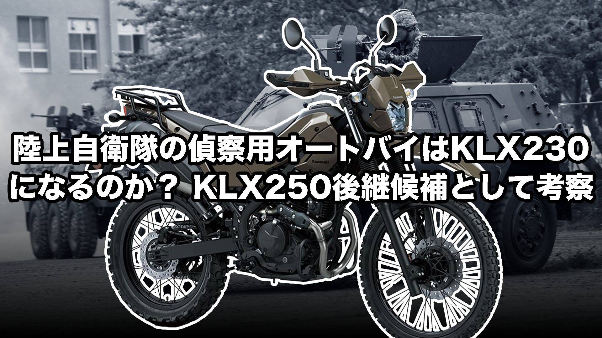 とはいえ、運用する隊員の幅広さ、維持管理のしやすさ、現行規制への対応、メーカー側の供給継続性などを考えると、KLX230系が後継候補として浮上するのは自然な流れにも思えます。
