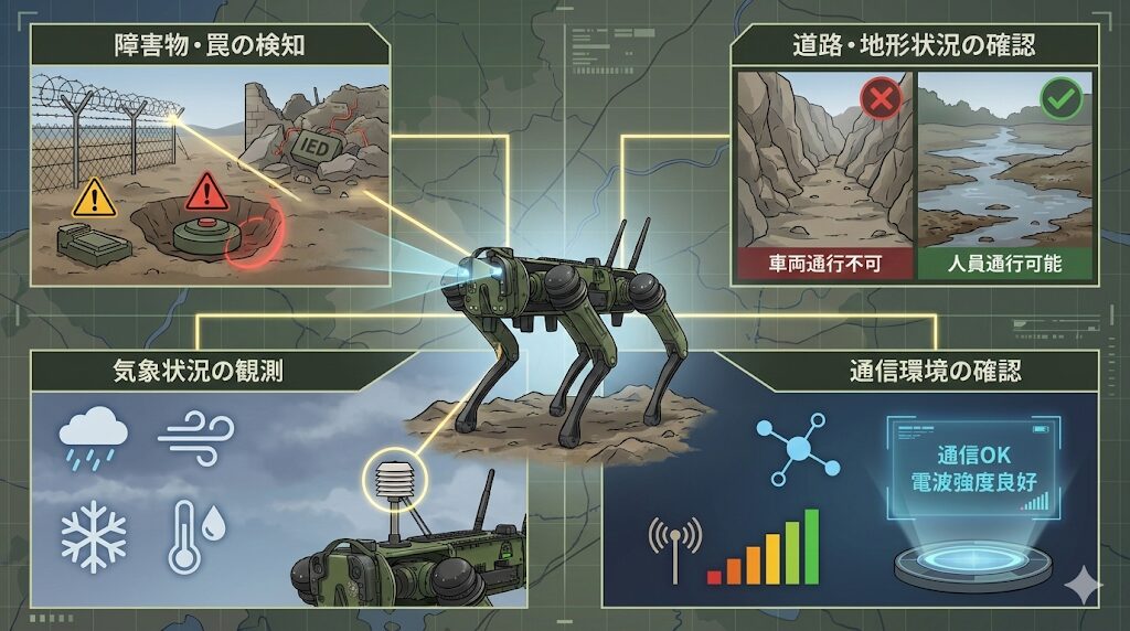 通信環境の確認など、戦闘以外での偵察項目は多岐におよびます。